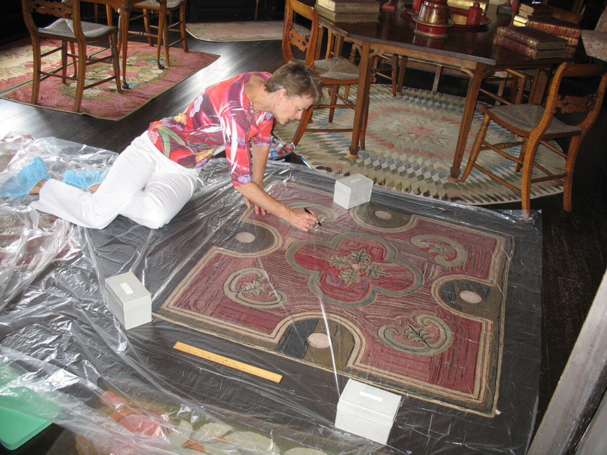 After selecting a rug for our reproduction project, Sally got right to work tracing a pattern